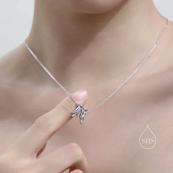 This tiny otter necklace will have you holding hands with nature in style! Crafted from sterling silver with precious metal rhodium coating, this 40 cm (plus 5 cm extension) necklace is nature-inspired and lovingly crafted with a small batch lost-wax casting process. Keep it close to your heart with the SRS 925 stamp!