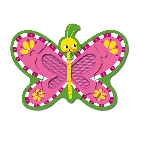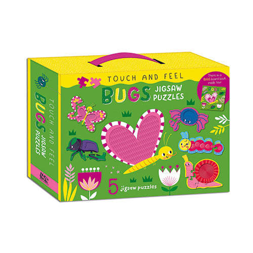 This bug-themed jigsaw set features 5 four-piece puzzles, each with a soft, squishy texture that's perfect for tiny hands. Also included is a board book showcasing the bugs to help little ones complete their puzzles. The chunky pieces make playtime tactile and fun! Book size: 140 x 140mm. Box size: 280 x 210 x 65mm. Illustrated by Sarah Wade.