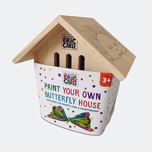 Invite colourful butterflies to your garden with this Eric Carle paint-your-own butterfly house. Crafted from sturdy wood and featuring printed design guides, it includes six vibrant water-based paints and a brush. Size: 200 x 200mm.