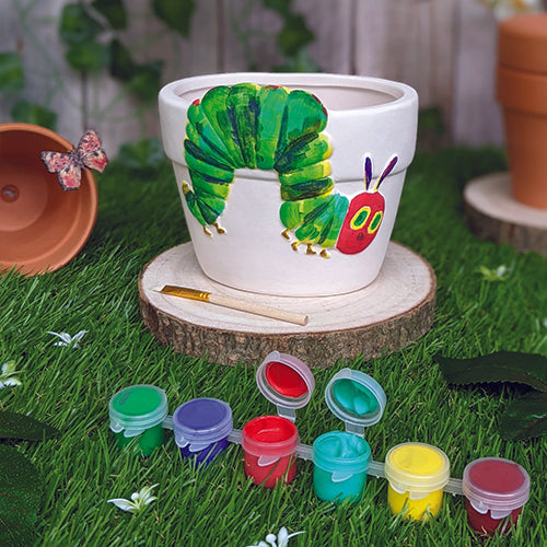 Unleash your imagination with this paint-your-own plant pot kit! Featuring The Very Hungry Caterpillar, this ceramic pot includes six vibrant water-based paints and a brush to spark your creativity.