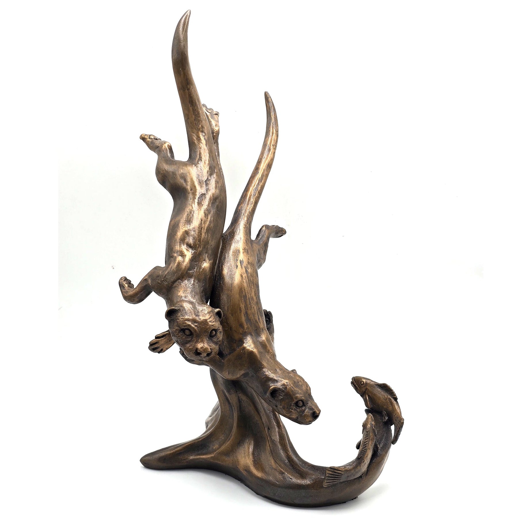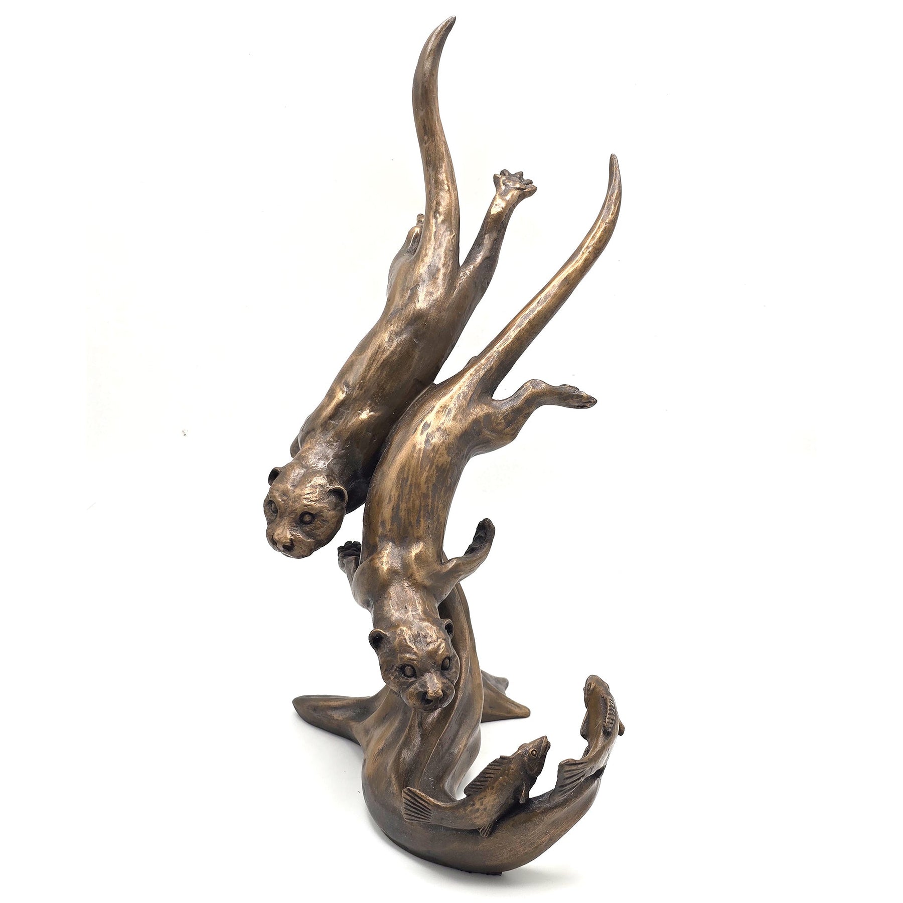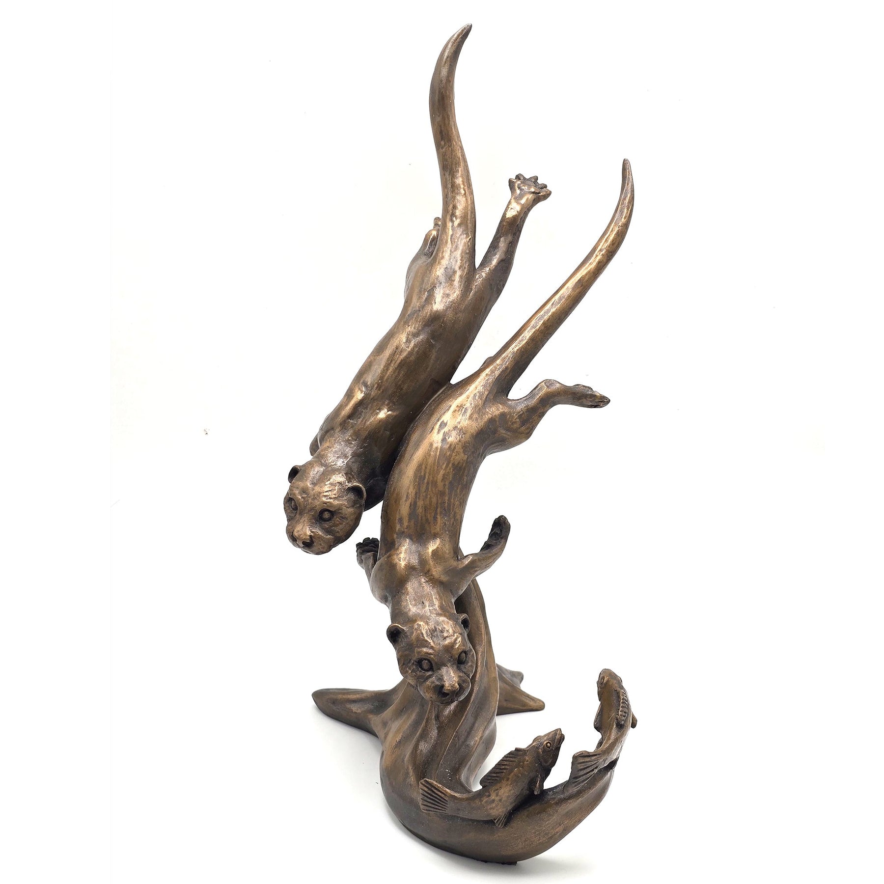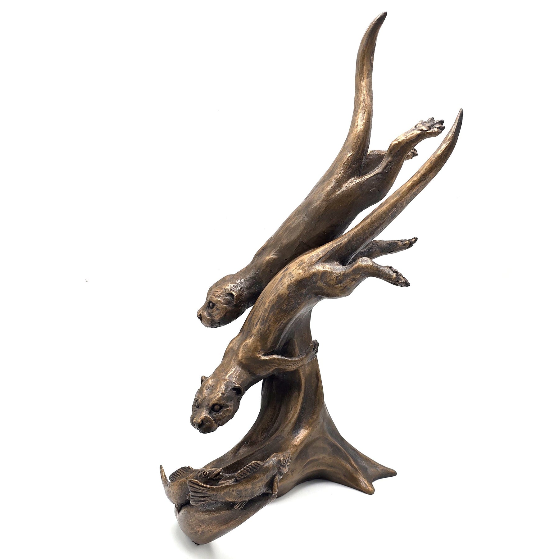 Pair of diving Otters Sculpture by Oriele Bronze WL178