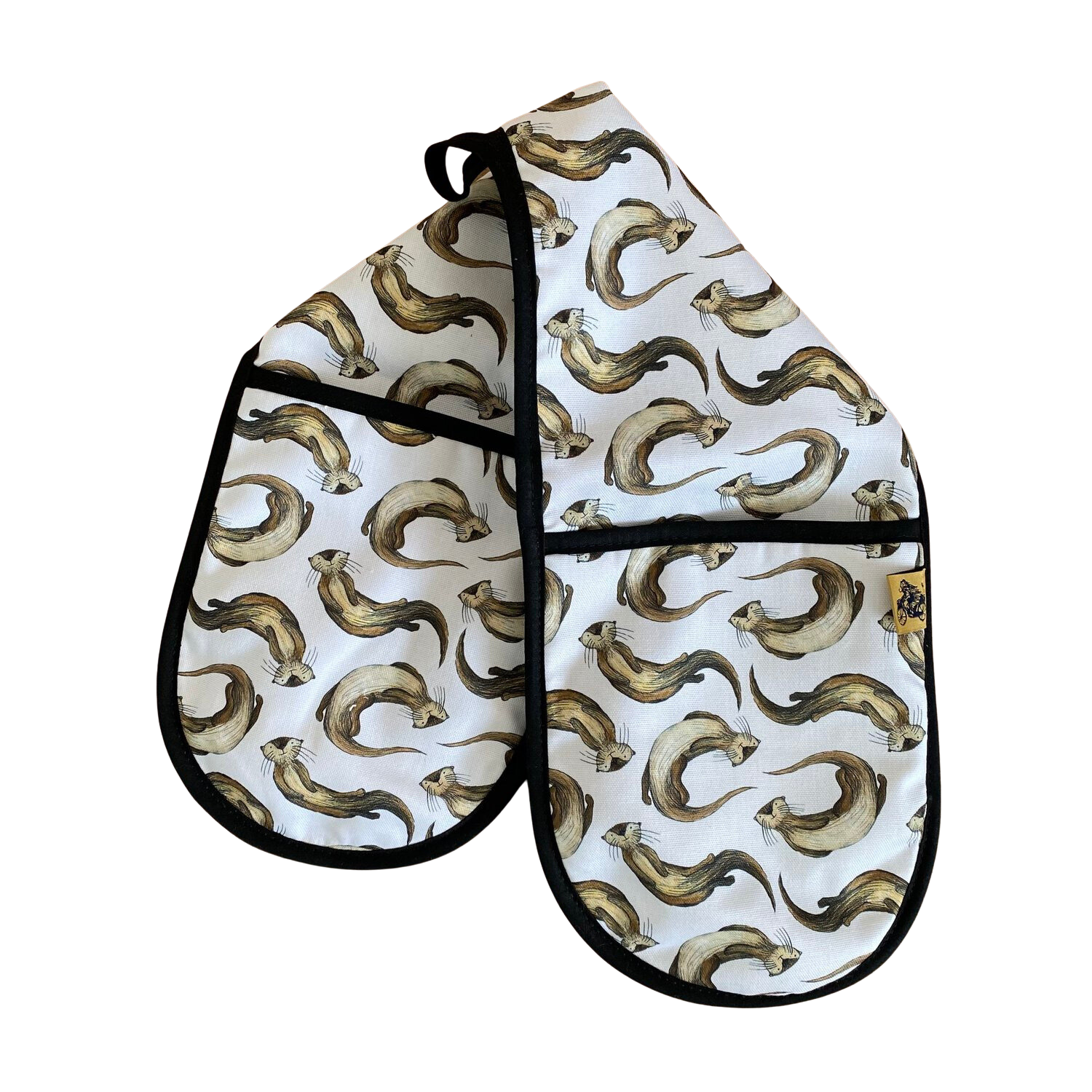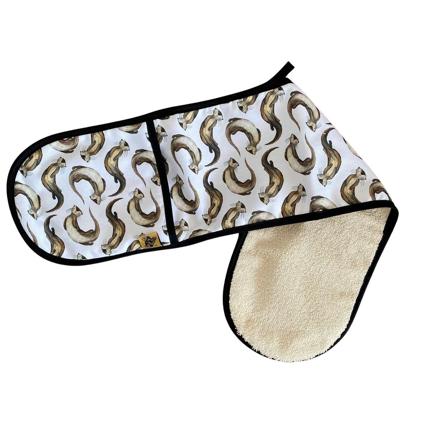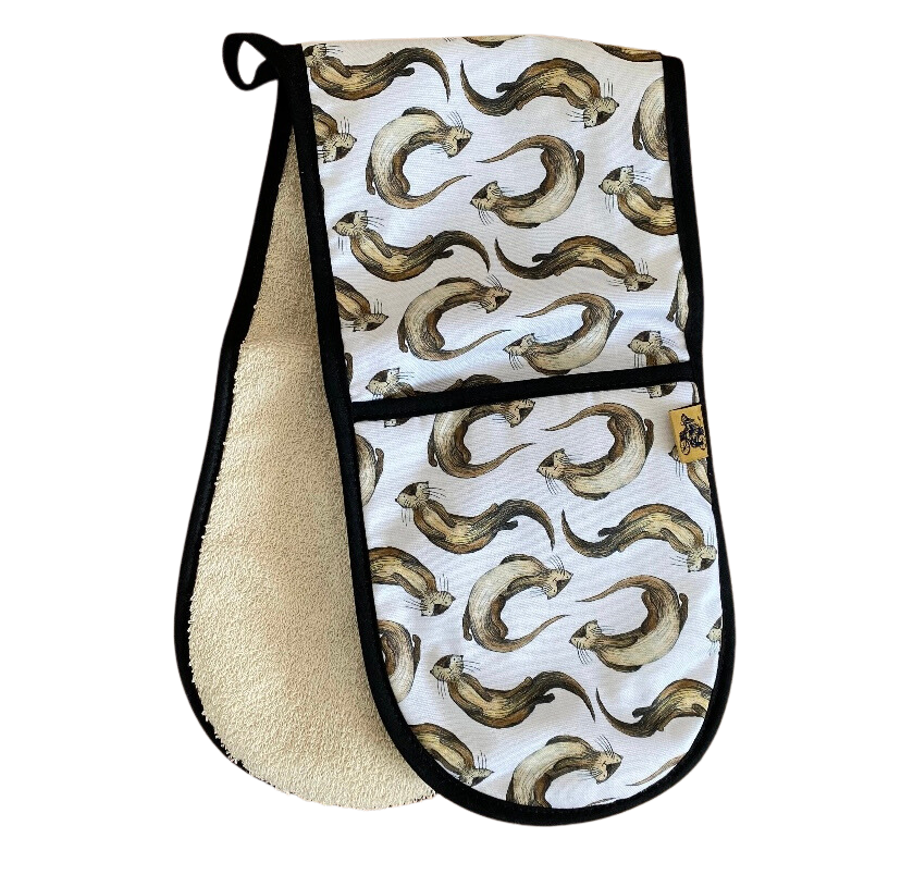 Bring safety and style to your kitchen with the Otter Oven Glove. Crafted in the UK with 100% cotton outer and natural towelling inner, this double oven glove offers up to 250°C protection for 15 seconds when handling hot items in or out of the oven. Featuring a hand-printed tag and it has a convenient loop for easy hanging.