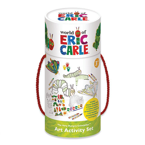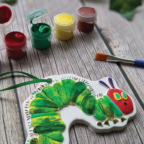 The Very Hungry Caterpillar Deluxe art activity set offers a plaster caterpillar figure ready to be painted, accompanied by six vibrant paints and a brush. It also includes ten colouring sheets, six crayons, three ink stampers, and a variety of engaging stickers. Designed to inspire creativity, this kit provides numerous opportunities for painting, drawing, sticking, and colouring. All materials have been safety tested, ensuring suitability for children to explore their artistic talents with confidence.
